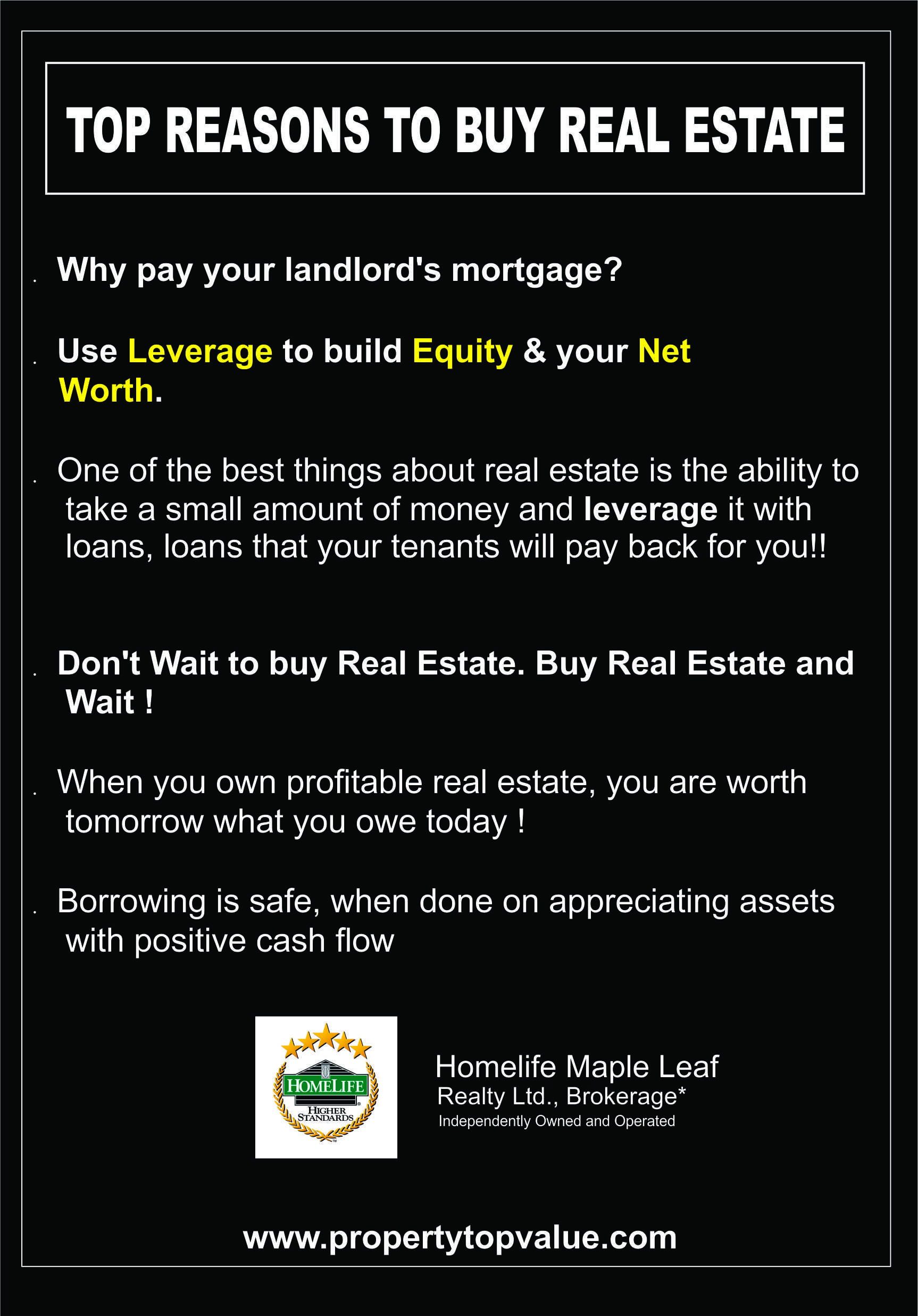 Buying or selling properties in this crazy GTA market can be daunting but you can rest assured that we at Team Property Top Value will be working diligently: If you’re selling, we will try our utmost to get you top dollar for your property If you’re buying, we will try to stretch your money to get you the best value for your money. We have strong people to people and communication skills; so whether you are looking to buy, sell or create an investment portfolio in and around GTA/cottage country, you can rely on our expertise and experience. So we invite you to let us guide and assist you in achieving your real estate goals and develop a relationship to last a lifetime.