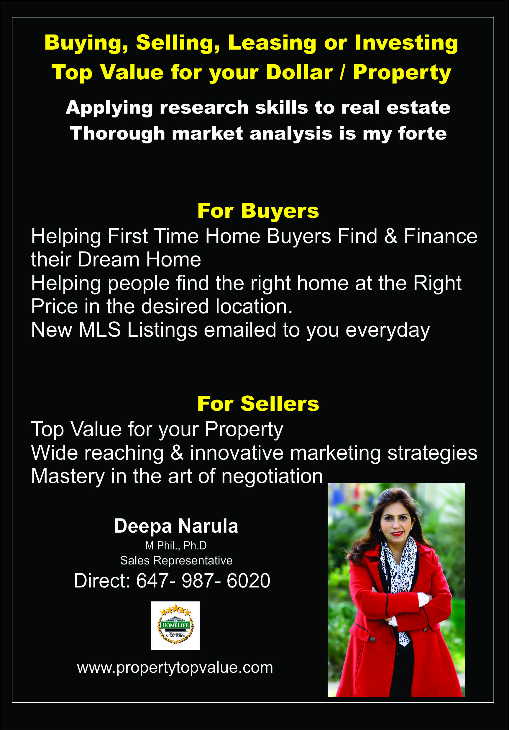 Here is what Deepa Narula, former lecturer has to say on why she made the switch to real estate: My journey from being an educationist at Delhi University to becoming a Realtor with the Toronto Real Estate Board! We had been investing in real estate almost ever since we became landed immigrants in Canada in 2004 and bought our first condo in Toronto. Gradually we discovered firsthand and from personal experience the truth of the statement that investing in real estate is a good way to leverage, build equity as well as a passive stream of rental income and a good way to build one’s net worth. So, we booked a few pre-construction condos in downtown Toronto, Liberty Village etc. We also diversified our portfolio by investing in a freehold detached home for rental purpose. Not only were we able to leverage the equity we built up gradually, there was substantial appreciation when we sold them. Being a forever student who loves to learn new things, I studied the courses to become a professional realtor. As I have a researcher’s background, my forte is meticulous attention to details of real estate, market analysis, trends and exploring the beautiful and diverse neighbourhoods and communities of my adoptive land. When I showed up for my first real estate class and the instructor asked me my previous profession, I told him it was teaching and he said that a realtor’s role is very much that of an educator: educating buyers and sellers as they conduct this important transaction.